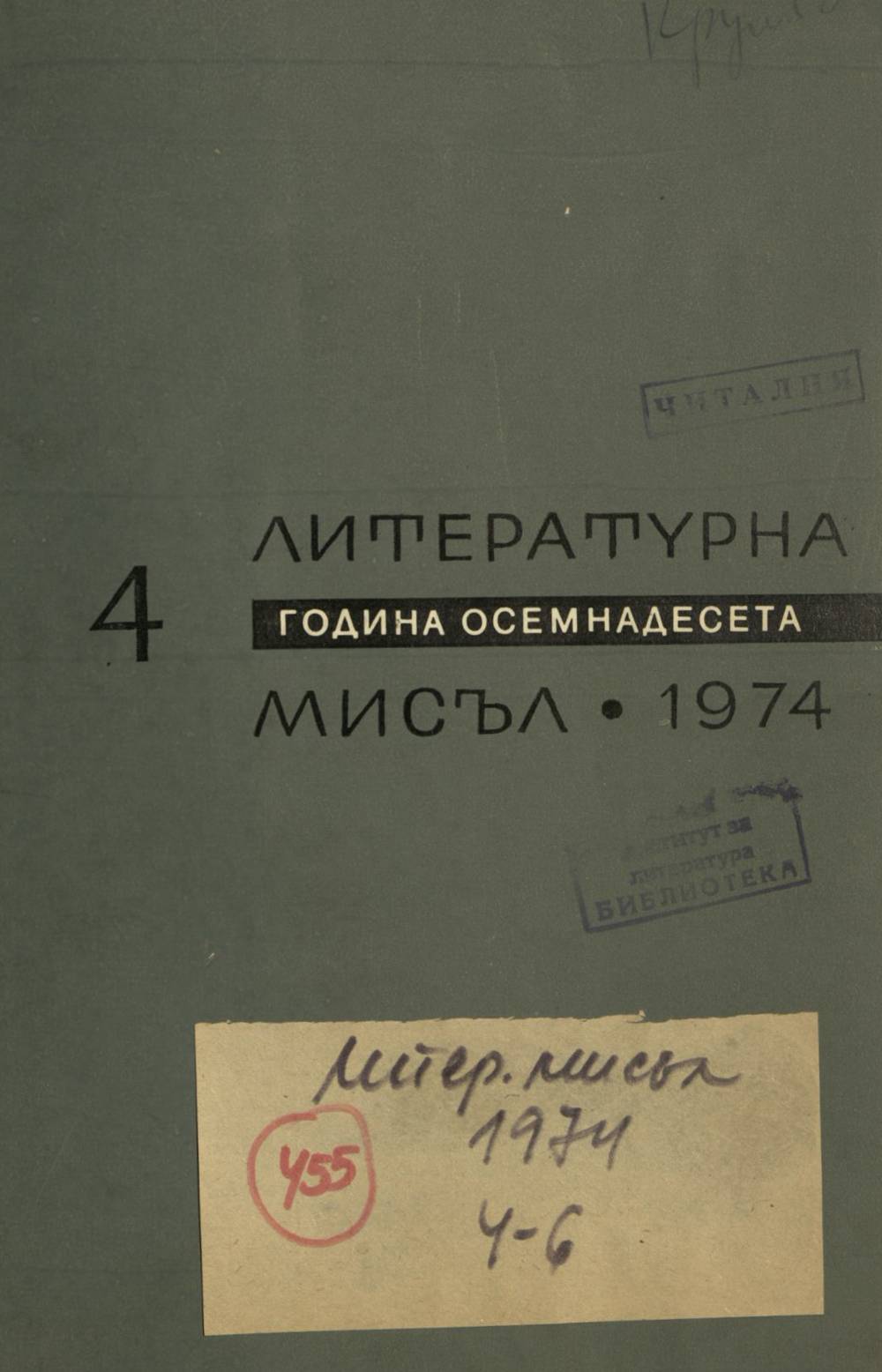 Ключови думиРезюмеАко главните задачи на литературата са да изследва душевността на човека и да тъл кува правдиво многообразните, сложни и противоречиви жизнени явления, а на литературната критика - да направи по-ясни идейните и естетически позиции на писате ля, като определи неговото място в разви тието на националния и световен литературен процес, то задачата на библиографията е да систематизира художествените произведения и да ги направи по-лесно достъпни и ползувани от читателя. Ролята на библиографията етолкова по-важна днес, като имаме пред вид неимоверно бързите темпове на развитие, които налагат техническите пре образования на нашето време. Съобразявайки се с нашето стопанско и културно развитие, Народната библиотека „Кирил и Методий" върши една похвална дейност: тя издаде в последно време редица ретроспективни и препоръчителни библиографии, три от които заслужават по-специално внимание. Книгата „Съветска художествена литература в България" се роди след упорития дългогодишен труд на Васил Александров. За разпространението на съветската художествена литература у нас имаше два библиографски справочника. Единият - на 3. Орешкова и С. Танчева, издание на Българския библиографски институт „Елин Пелин", излязъл през 1955 г., за периода 1944-1954 г., и другият - изработен от 3. Орешкова, С. Кънчев и С. Танчева, издаден от Народна библиотека „Кирил и Методий" в 1967 г., за периода 1955—1965 г. Новата библиогра фия допълва тия два справочника. Тя обема периода от победата на Октомврийската революция в Русия до разгрома на фашизма и капитализма в България. А това е периодът на най-яростното преследване на руската и съветската художествена и научна мисъл У нас. Сравнително най-отдалечен, тоя период е и най-труден за библиографски издирвания. И думата съставител, поставена пред името на В. Александров, едва ли е достатъчна, за да обясни усилията, които са били нужни да се проучат многобройни партийни издания, прогресивни вестници и списания, за да се установят толкова библиографски факти за писатели, да се разкрият псевдоними и се уточнят различни сведения, свързани с работата на библиографа. Нужни са били и редица консултации с български и съветски културни институти и организации, с преводачи, писатели 1 Вж. Съветска художествена литература в България. 1917-1944. Съставител Ва сил Александров. Ред. Стефан Кънчев. C., 1972. и издатели. Библиографията съдържа све дения и за съветската литературнокритична мисъл у нас. Първата част на книгата обхваща мате риали за съветските писатели, превеждани в България. Те се предхождат от кратки биографични статии за авторите. Тоя основен дял на библиографията е и най-големият. Би трябвало да се отбеле кат на първо място сполучливо съставените биографични бележки. Тяхната стойност разбираме, когато съзнаваме колко трудно е да се обхване в няколко реда животът и литературната дейност на един писател. А в библиографията са застъпени немалко автори с разностранно литературно творчество. Библиографията разкрива частично и процеса на литературното общуване между българската и съветската литература, който Въпреки трудности и заплахи се развива бурно и окриля прогресивното движение в България. Наред с имената на Ленин, Горки, Маяковски, Блок, А. Н. Толстой, В. Брюсов, Н. А. Островски, А. Фадеев, Д. Бедни, Д. Фурманов, А. Жа