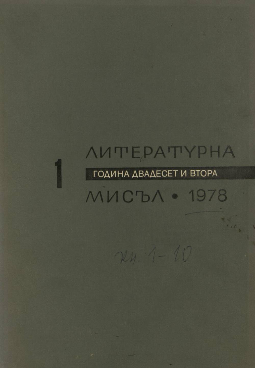 Ключови думиРезюмеНеизвестните страни, които крие едно творчество, невинаги стават достояние на читателя. Има случаи, когато самият автор се стреми да заключи" някои от тайните на творческия процес, да ги скрие в чекмеджето си, далеч от любопитството на критиците и изследователите. Но има и моменти, когато тези творчески черти „в сянка", се разкриват вне запно, твърде често изненадващо за самия творец. Петър Тонков долавя подобни противоречия у Иван Мирчев. В стихосбирката „Часовник на стареца" (1967) Мирчев „се решава" да помести „Войнишки цикъл“, писан в края на 20-те години. В онези години, моби лизиран към щаба на действуващата армия, поетът си еводел своеобразен дневник. В него белязаният с енигмата на символизма поет се среща с грубата действителност, по-точно затваря я в дневника си, за да я остави в забвение години наред. Като един от ковачите на думите от филигран" той съумява дълго да задържи тези впечатления в бележника си. Тайната и трайна сила на тази поетика той разкрива едва след като се убеждава, че символизмът е започнал несъмнено да се руши - не само като течение, а и като смисъл. Струва ми се, че невралгичната точка в книгата на Петър Тонков се крие именно в търсенето на тия преображения на поета, в неговото непрекъснато себеизграждане и оформяне. И приносите на Петър Тонков са били възможни само благодарение на обстойните и задълбочени събеседвания с поета. Бавно, но сигурно той енавлизал в територията на Иван Мирчев, което от своя страна едовело и до известно усложняване на критическия материал, утежнен от обяснения и детайли. Това е лабиринт, в който лесно се влиза, но трудно се излиза. И все пак това е най-задълбоченият, най-обстоен интерес, проя вен към цялостното творческо дело на Иван Мирчев. Петър Тонков съумява да отсее критическия субстрат, в една или друга степен ненужен или не много съществен, но все пак в резултат на аналитични занимания - показателен, да ни въведе в света на един поет, който съумява да се открои като своеобразен творец благодарение ранното си навлизане в една образна и смислово-метафорична поетика. „Това, което открои Мирчев сред другите поети от поколението му, бе своеобразната и неповторима метафоричност на лириката му" - обобщава П. Тонков. Критическият успех на Тонков е и в това, че е потърсил и съумял да навлезе в главните черти на лирическия характер на поета, с типичните негови колебания по пътя на изграждането му, огле дани в пряка връзка с обективната конкретноисторическа действителност. Тази сполука е резултат на стремежа да се проследят промените в художественото съзнание, този труден процес в органиката на творческата същност - основно изискване за което и да е изследване, особено когато се отнася до творчество, съз давано в едно продължително време. Верни са и заключенията за завоеванията на Иван Мирчев - превръщането на собствената съдба естетически обект. B Иван Мирчев е в критическите интереси на Петър Тонков още от периода на сп. „Бисери“. Ако имаме някакви сериозни и, струва ми се, най-основателни възражения, те са преди всичко за анализите на Тонков върху ранния период на поета. Това донякъде е и обяснимо, тъй като там са дълбоките пластове от ранното творчество на Мирчев. Според П. Тонков: „За първи път Мирчев публикува стихове в сп. „Бисери" - 7 декември 1913, бр. 20 (вж. с. 45). Авто