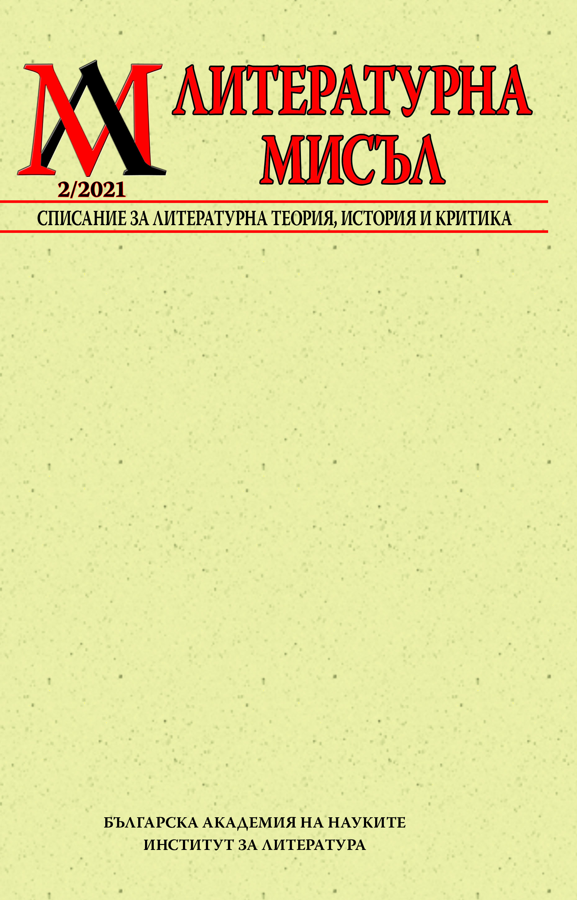Ключови думиРезюмеThis paper presents the satirical works of Vasil Popovich (1833-1897), most of them unpublished in his lifetime, and analyses them in the context of their time – the debates about the standard language, about literature and the Bulgarian Literary Society from the end of 19th century. In the focus are also the conflicted relations of V. Popovich with Ivan Vazov, Aleksandar Teodorov-Balan, Vasil D. Stoyanov, and Konstantin Jireček. The tension between them is interpreted as a manifestation of their competition for symbolic capital and for gaining an important position in society and literature. As a supplement, at the end is added an unpublished text by V. Popovich from 1887, written in an imitation of Oldbulgarian/ Church-Slavonic language as a personal letter.